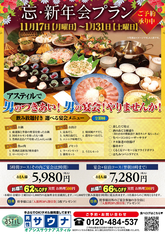 2025.11 忘新年会プラン(入浴+ご宴会のパック) ご予約承り中