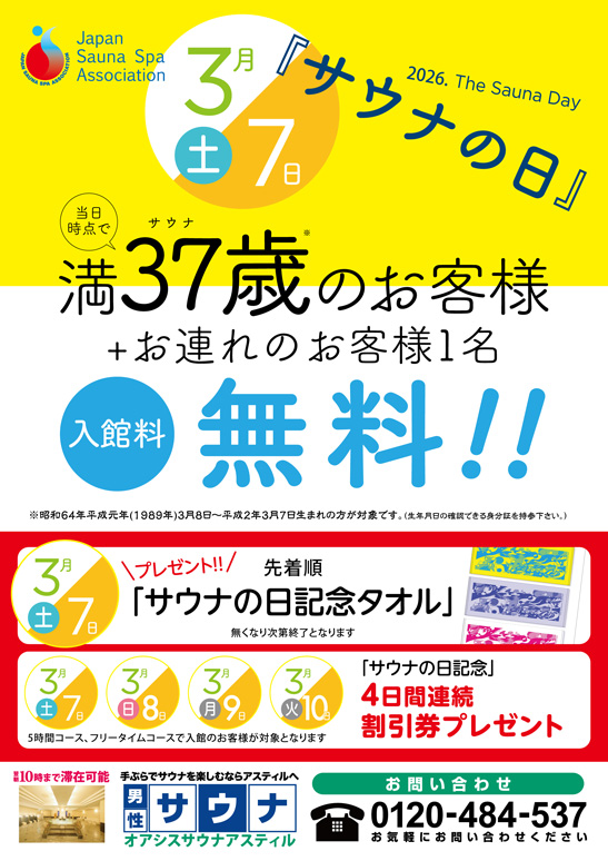 2026.2 サウナで男の宴会プラン(入浴+ご宴会のパック) ご予約承り中